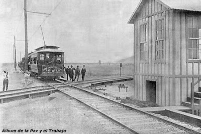 Los primeros 5 km de la línea, de Lerdo a la bodega de tranvías y la estación de ferrocarril en Gómez Palacio, comenzaron a funcionar el 3 de marzo de 1901. Esta fue la tercera línea de trenes eléctricos en México - precedido sólo por los tranvías en Nuevo Laredo en 1890 y Ciudad de México en 1900. Fue el primer tranvía interurbano eléctrico en América Latina. Aquí hay una vista a principios de la bodega en Gómez Palacio