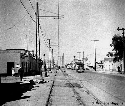 Aquí está el tranvía 12 cruzando el antiguo canal de tierra entre Gómez Palacio y Lerdo, donde ahora corre la calle San Ignacio (la que va de la UJED al periférico), aquí se ubica actualmente un célebre puesto de gorditas y otro de jugos, muy socorrido por los estudiantes de la Facultad de Medicina.