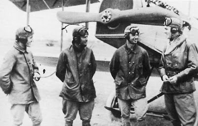 | Los pilotos Rader, Brooks, Royce y Christtie frente a un JN-3 |