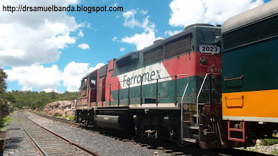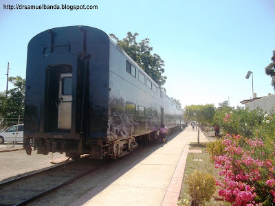 Este era un tren vintage, auspiciado por entusiastas del Southern Pacific Railway Museum, que está instalado en Campo, California, sobre las vías del antiguo ferrocarril San Diego-Arizona, que tenía una parte de su recorrido en territorio mexicano (segmento Tijuana-Tecate, la historia de este tren está reseñada en esta entrada: http://drsamuelbanda.blogspot.com/2015/06/historia-del-ferrocarril-san-diego.html). Los recorridos de este ferrocarril datan de los 80's si no me equivoco, y en principio se hacian para los ferroaficionados americanos, el tren llegaba hasta el sitio donde la via cruzaba a México, pero eventualmente se logró cruzar al país y el recorrido gozó de cierto éxito. No obstante las malas condiciones de los tuneles obligaron al cierre de operaciones, ya que uno de los tuneles se derrumbó. Del lado mexicano sin embargo continúa un tren turístico en operación: