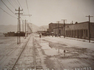 Hoy nos vamos con este carrito de trabajo del Ferrocarril Eléctrico de Lerdo a Torreón, el popular tranvía eléctrico que unió a las ciudades laguneras durante poco más de 50 años. Este vehículo por sus características, evidentemente era usado para acceder a los cables que proporcionaban la energía. Desconozco lugar y fecha de la toma, pero adivino que es en las instalaciones de la compañia en Gómez Palacio. Nótese que algo anuncia el carro: "Todos los domingos grandes ta...s en el cambio no. 3"