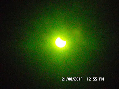 Armado con mi cámara fotográfica, un filtro de soldadura, algunos arreglos caseros, y mucha, pero mucha concentración para vencer mi pulso maraquero (qué bueno que no fui cirujano (de vivos)), logré hacer varias tomas del eclipse que hoy fue visible de manera parcial en las latitudes de mi lugar de residencia: